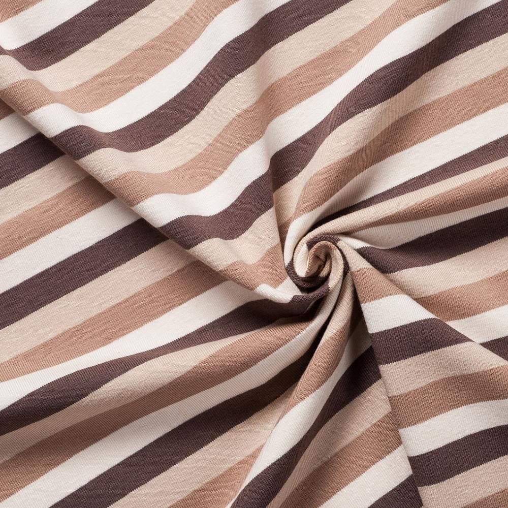 Our multi stripe Single jersey made of 100% Cotton Jersey Fabrics , in your any required Cotton Jersey Fabrics  are a popular choice for creating soft, comfortable, stretchy clothing. Cotton Jersey is a soft, comfortable Dressmaking Fabric which stretches easily. Cotton Jersey is widely used in the manufacture of clothing and is most popular as a lightweight t-shirt fabric, however and also available any your Required composition for more details Please check composition Tab inside details section