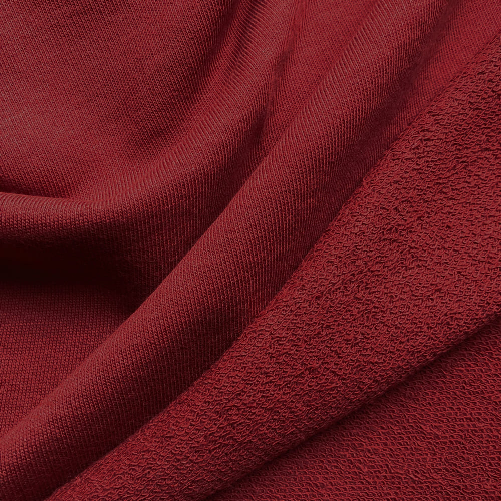 French terry is a knit fabric similar to jersey, with loops on one side and soft piles of yarn on the other. This knit results in a soft, plush texture ,as is comfortable fabric that is usually made mostly or entirely of cotton. French terry fabrics are frequently made of 100 % cotton, but they can also be created by blending cotton fibers with a small amount of spandex, lycra, rayon, or polyester, as well as organic soy or cotton fibers. Please check composition Tab inside details section